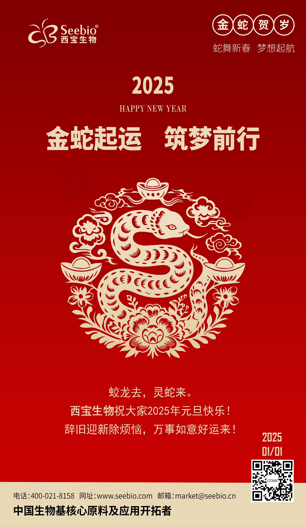 金蛇起運,筑夢前行,西寶生物祝大家2025年元旦快樂!