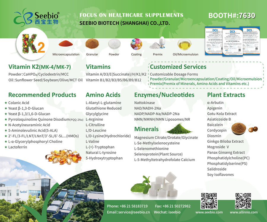 這不僅是新品的璀璨舞臺,更是全球產業鏈精英對話的思想場域。西寶生物深耕原料創新二十余載,此次攜產品服務與前瞻布局亮相,期待在展位7630與您相遇。以創新原料為橋,讓合作的星火燎原,攜手叩開全球市場新大門,共譜行業發展的恢弘篇章。