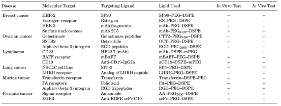 針對一些靶點被證明有效的PEG-Lipid體[7]: