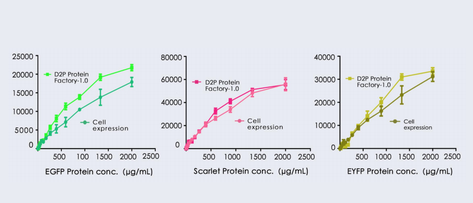 (僅需一個(gè)敞口容器,如一次性杯子或燒杯或孔板) - 蛋白生產(chǎn)快速:3h實(shí)現(xiàn)蛋白生產(chǎn),比傳統(tǒng)細(xì)胞培養(yǎng)時(shí)間縮短10-100倍