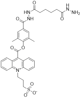 | 英文名 | 3-(9-((4-(2-(6-Hydrazineyl-6-oxohexanoyl)hydrazine-1-carbonyl)-2,6-dimethylphenoxy)carbonyl)acridin-10-ium-10-yl)propane-1-sulfonate |