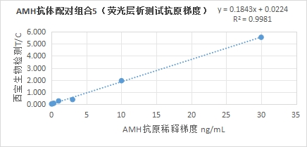 4.3熒光免疫層析平臺抗體配對組合5:AMH抗體(貨號:EKY0328H)標記熒光微球+AMH抗體(貨號:EKY0328I)劃膜